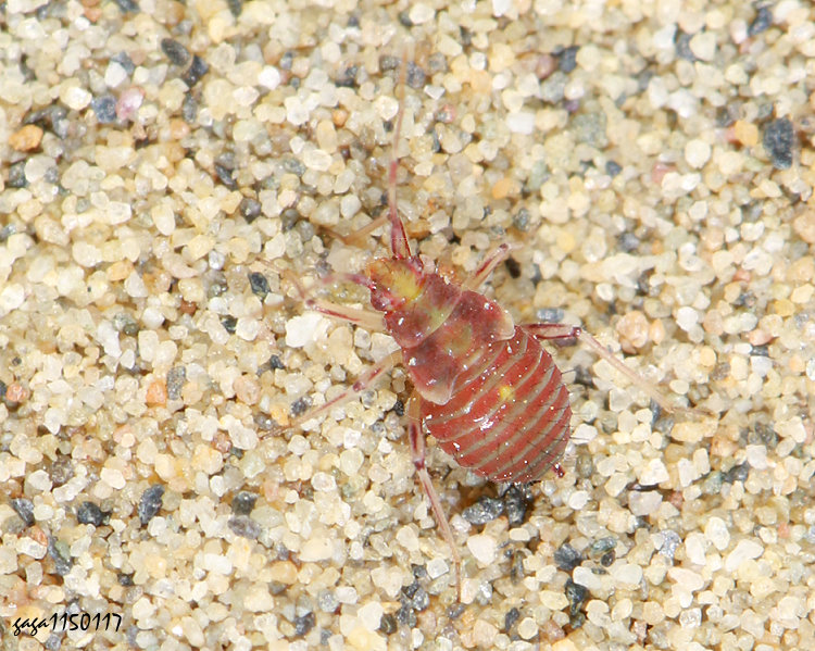 型態描述:若蟲,體色紅褐色,腹部具白色的環紋。不確定是本科的種類,需要再觀察。