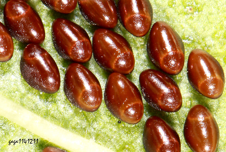 ↑菲緣椿象 (緣椿科/菲緣椿屬) 長約 20mm,觸角黑色,體色紅褐色,前胸背板中央有橙紅色縱紋,延伸至小盾片板,側角無明顯突出,側緣框邊線,腹背板外露,膜質翅黑褐色,後腳腿節密生黑色瘤點,後腳腿節粗壯,雄蟲特別發達,脛節近中部有一根刺突。 本屬目前台灣名錄沒有,Physomerus grossipes 主要分布於印度和中南半島國家,香港稱菲緣椿或寬腿緣椿象。本種紀錄於南部嘉義低海拔80-100公尺山區,棲息豆科植物,少見。 (附記) 他們通常群集於旋花科植物或豆科植物上取食其汁液,被視為農業害蟲。雌蟲交尾後便會將卵產在葉子的下面或其所吃的植物的莖上,以及鄰近的植物上,會護卵和護幼。原產於東南亞,現在已擴散到太平洋諸島,這兩三年在高雄、屏東平地至低海拔地區都有紀錄,且數量多有逐漸擴散的趨勢,可能是外來入侵種。 (以上文字提供:簡俊哲)