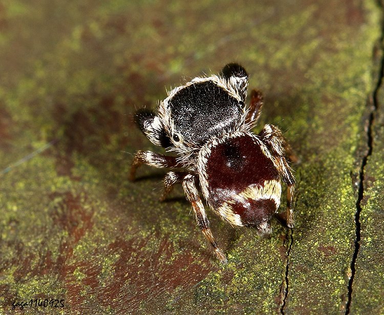 ↑黃寬胸蠅虎 ,雄,紀錄於海拔2000公尺山區。