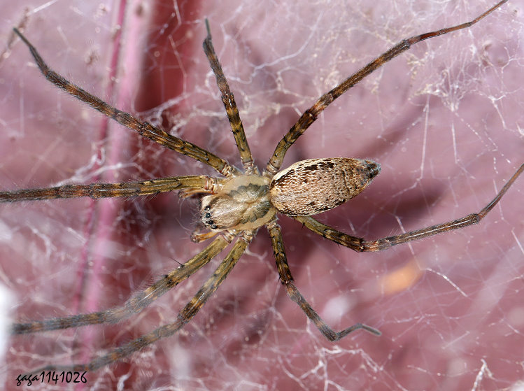 ↑鎖孔褸網蛛,同上,腹部的斑紋較複雜。