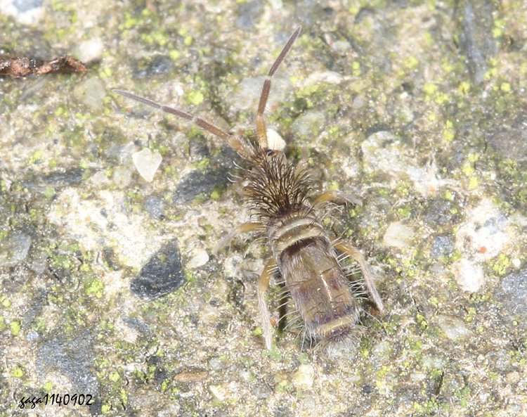 (長角跳蟲科) 小型,體背淡褐色,密布長毛,腹背前半有3條明顯的白色環紋,下緣黑色,近端部有一條白色橫紋。