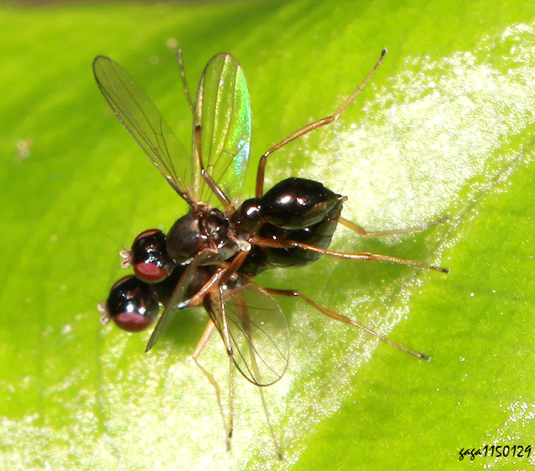 ↑二叉艷細蠅屬 Dicranosepsis sp. ,交尾,雄上雌下。 / 800-1000公尺