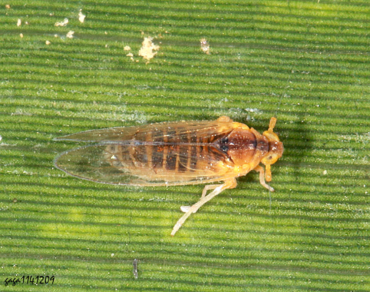 ↑飛蝨 / 570-650公尺 (飛蝨科) 體長4.3 - 5.2 mm,體型寬長,體背黃褐色,頭部及觸角較淡,胸部背板顏色較深,腹背各節間有黑色的橫斑,各腳細長,淡黃褐色。 本種紀錄於低海拔50-650公尺山區,發生期間在同一地區數量很多,常見於竹林活動。