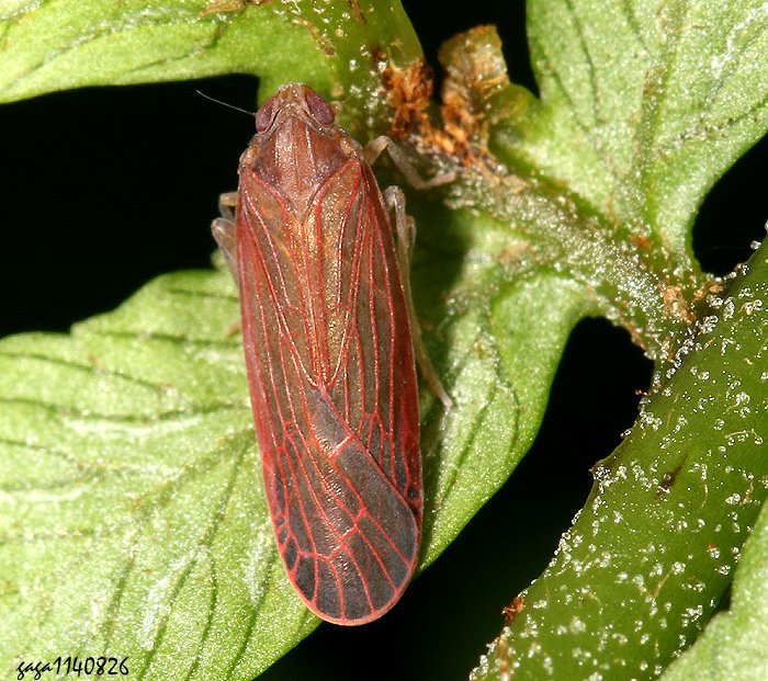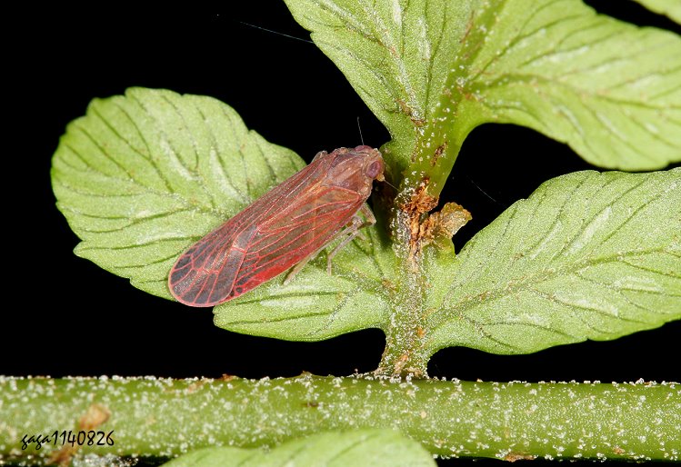 (小頭飛蝨科) 體長約6-8mm,體型狹長,頭小,複眼紅褐色,體色黑褐色,前胸背板有3條縱脊,前翅縱脈紅褐色,近翅前緣有紅褐色分布,近翅端顏色較黑。