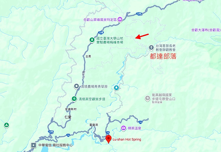 第2天用goole導航爬上翠峰(箭頭指向的農車路),