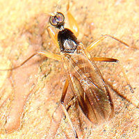 Trigonomima pennipes(少) 毛足食蟲虻(10) 體長6mm本屬1種 |