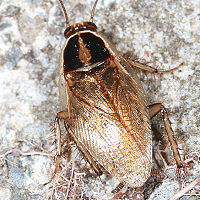 (一) 昆蟲的分類:動物界→節肢動物門→昆蟲綱→蜚蠊目 (二)蜚蠊目:俗稱蟑螂,生活史為卵→若蟲→成蟲,屬於漸進變態昆蟲。身體扁平,頭小向下置於前胸背板下,觸角絲狀 ,口器咀嚼式,各腳細長具刺毛,善於疾走。停棲時左、右翅重疊覆,少數種類無翅或退化。壽命有1 - 5年,屬於夜行性昆蟲,常棲息於居家或山區。全世界有29科2300多種,台灣已知75種。 |