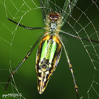 Trichonephila clavata(普) 橫帶人面蜘蛛(雄) 體長5-10mm本屬2種 |