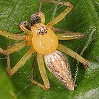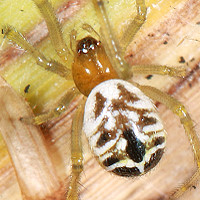 (稀) 淡色花皮蛛 (2) 體長7-8mm•眼6枚 本屬2種 |