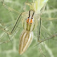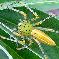 Peucetia formosensis(少) 台灣綠貓蛛(雄) (4) 體長7-15mm本屬1種 |