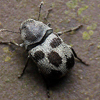 | 大頭豹斑龍蝨 | 黑盾肥腳金花蟲 | 條翅細花金龜 | 吸木蟲 Antherophagus sp. |