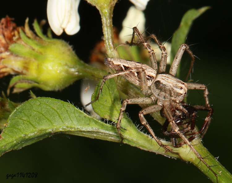 ↑臺灣貓蛛 (雌),前列眼至上顎左右有一條黑色的縱線,各腳側緣具黑色縱線。 / 100-200公尺 (南部)