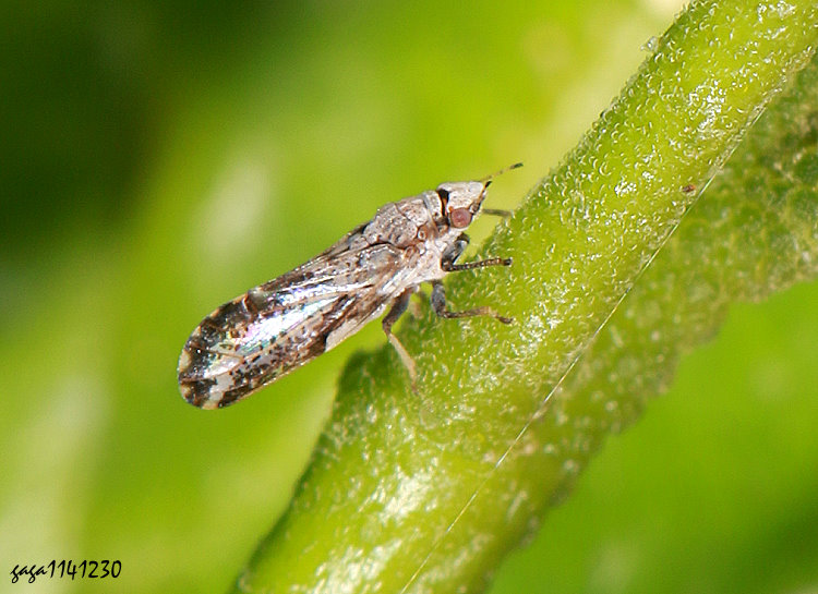 ↑柑橘木蝨 ,各脈室密生斑點,近端部有一條寬型的白色橫帶,近後緣黑色具白斑。