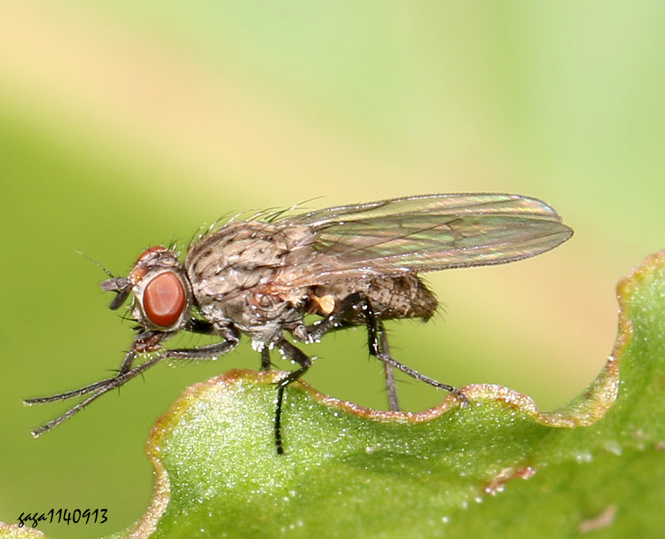 ↑花蠅 Delia platura ,另一個山區拍攝,頭部兩眼間有一個紅色的瘤突。