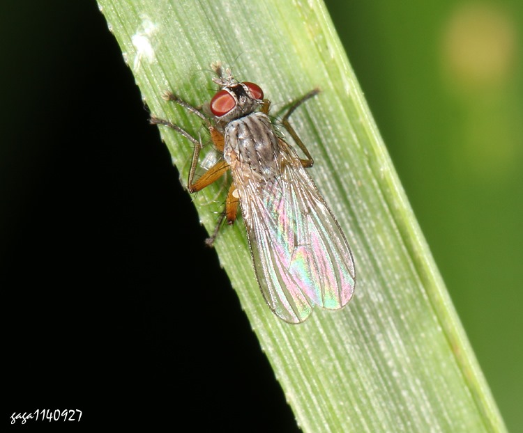 物種描述:體長4.8-5mm,體色淡灰色,胸背板有3條黑色縱線,腹部側面可見3列黑斑,各腳黃褐色。