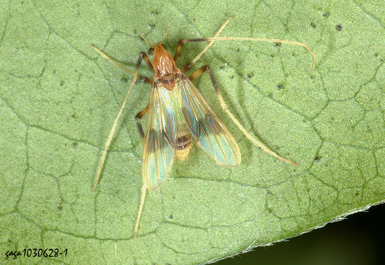 (搖蚊科)體長4.8mm,頭胸背板橙黃色,翅膀透明,中央有淡黑色的寬型橫帶,分布於中高海拔山區,稀少。