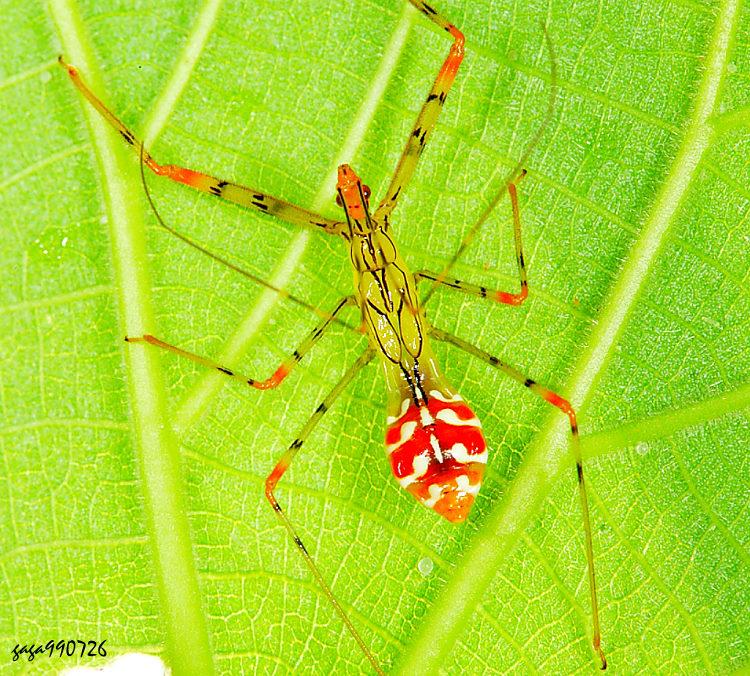 ↑多變嗯獵椿象,雄,體型瘦長,前胸背板及前腳都是橘紅色。 (攝影:嘎嘎920511)