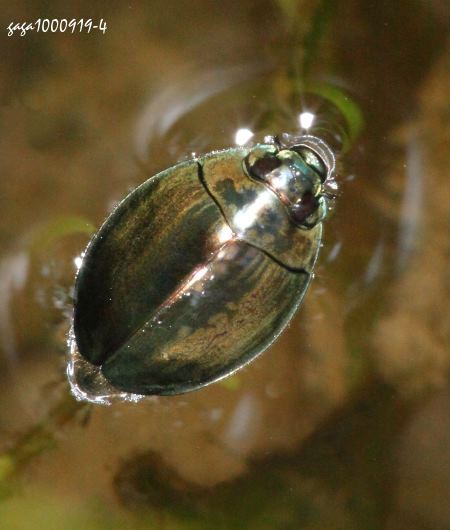 ↑梅氏圓豉甲,複眼朝上,不在兩側,方便注視水面上的環境和動態。