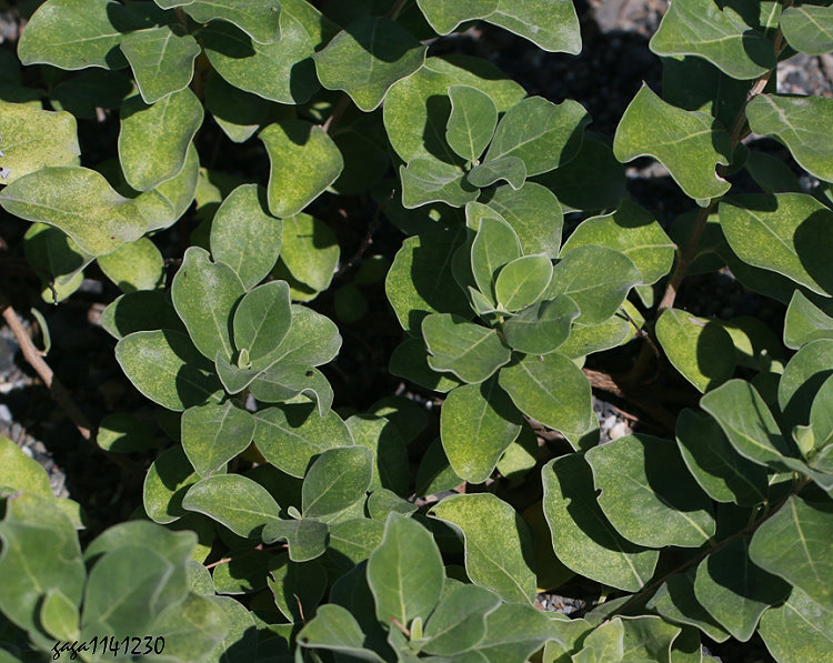 ↑十八斑瘦金花蟲 ,取食海埔姜植物葉片。
