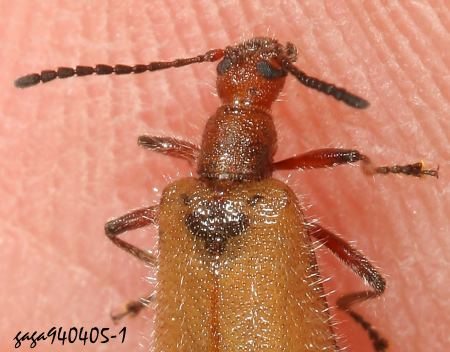 ↑ 紅異角擬金花蟲 ,頭胸部及各腳紅褐色,翅鞘黃褐色。 (滿月)