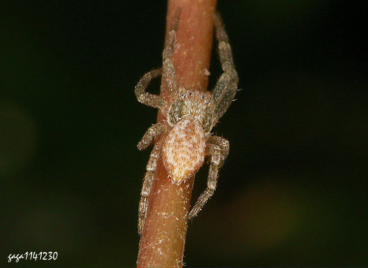 ↑細紋貓蛛 (雌),腹部側緣有2條不明顯的黑色細紋。 / 300-500公尺