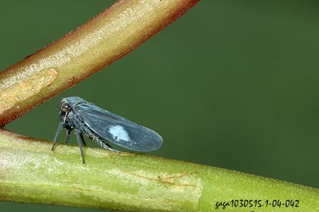 (葉蟬科) 小型,體背藍黑色,前胸背板不具斑紋,前翅中央有一枚白色的大斑,與近似種相較,本種各腳藍黑色。