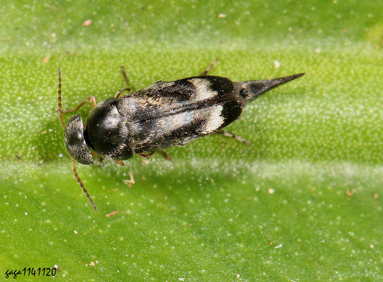(花蚤科) 體長6.3mm,體背黑色,與近似種相較,本種翅鞘近基部的白色分布為暗灰褐色,中段的白色分布為銀灰色。