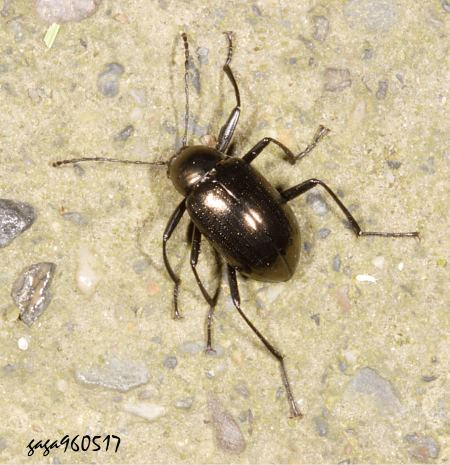 ↑鄰爍甲屬 Plesiophthalmus sp. ,翅鞘黑色具不明顯的刻點,背部隆起,各腳甚長。 (天祥)