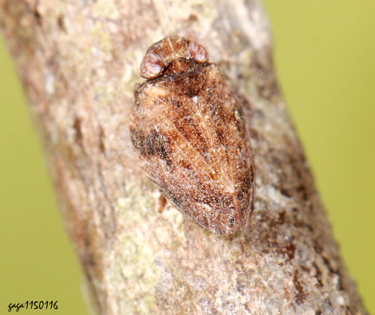 ↑圓飛蝨 Euroxenus vayssieresi (圓飛蝨科) 體長5mm,體色淡褐色,外觀近似三脊圓飛蝨屬,但本種翅脈較不明顯,前翅覆不明顯的白粉,近前緣有一條寬型的黑色橫帶,近翅端有一枚白色橫斑。 本屬目前名錄沒有,紀錄於低海拔20-50公尺環境,稀少。 (附記) 圓飛蝨 Euroxenus vayssieresi