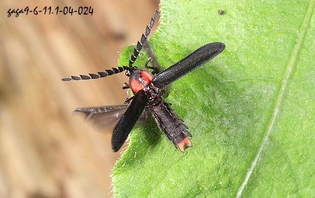 ↑南華鋸角螢 ,前胸背板前端黑色,側緣具黑色邊,觸角鋸齒狀。(體長11.5mm)