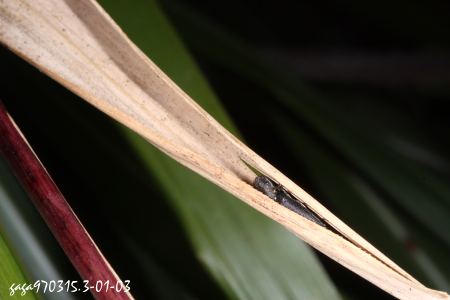 ↑叩頭蟲 Ectinus sp.,躲藏在捲葉為巢取暖。