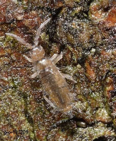 (長角跳蟲科) 小型,體色淡褐色,觸角短,腹部具不明顯的黑色縱帶,近腹端密生稀疏的白毛。