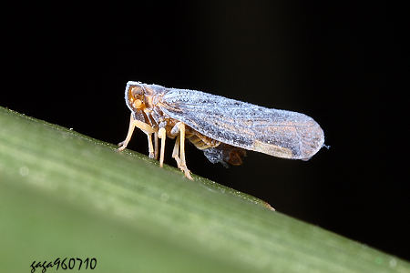 (長翅飛蝨科/粒袖飛蝨族Cenchreini) 體長5.2mm,前翅具灰白色粉末,近前緣後端有一枚條狀的灰色斑,斑型前後等寬,翅型端部弧圓寬廣,近似型態有多種。