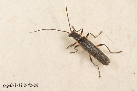 ↑異菊虎 Lycocerus sp. ,前胸背板其翅鞘側緣的黃邊較細或不明顯,出現在同樣的環境下。(體長8mm)