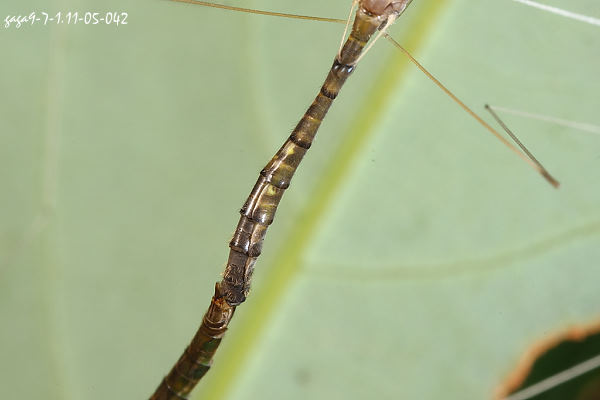 ↑長大蚊屬 Dolichopeza sp.,交尾,腹部褐綠色。
