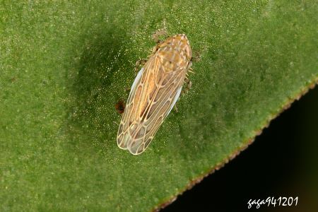 ↑角頂葉蟬亞科 Deltocephalinae (烏來) (葉蟬科 / 角頂葉蟬亞科) 體長4.6mm,體形狹長,頭部端部尖,兩複眼間左右各有5枚黑褐色斑,左右對稱,前胸背板有4條寬型的縱帶,端部具黑褐色斑點,小楯片基部有3枚斑點,前翅翅脈白色具格子狀條紋。 本種分布於低海拔山區,夜晚會趨光。