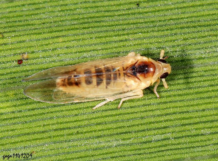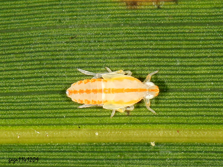 ↑飛蝨 / 570-650公尺 (飛蝨科) 體長4.3 - 5.2 mm,體型寬長,體背黃褐色,頭部及觸角較淡,胸部背板顏色較深,腹背各節間有黑色的橫斑,各腳細長,淡黃褐色。 本種紀錄於低海拔50-650公尺山區,發生期間在同一地區數量很多,常見於竹林活動。