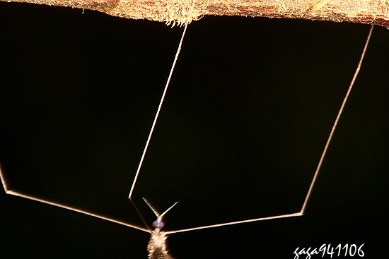 ↓有些種類的大蚊還會不停的搖擺身體,讓天敵看不到目標,像這隻全大蚊Trentepohlia sp.發現有「人」靠近就搖晃起來,等狀況消失才會趨緩,除了大蚊,有類似以「搖擺身體保命習性」的還有竹節蟲和蜘蛛類等。