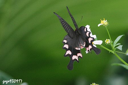 ↑臺灣麝香鳳蝶,搭配綠色的背景十分漂亮。