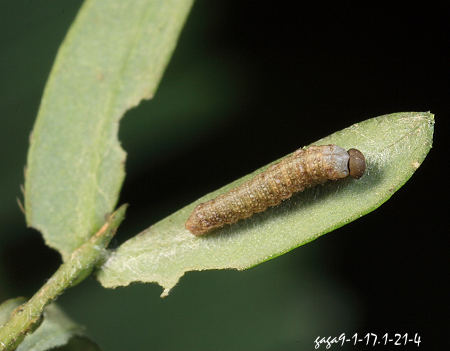 ↑金三線蝶,早齡幼蟲體表褐色不具黑色斜紋。