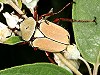 ←台灣角金龜,前胸背版有八字紋或無,翅鞘黃褐色。