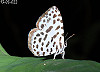 (小灰蝶科) 小型,雄蟲翅膀表面水青色,前翅外緣有黑色邊,後翅具淡褐色斑呈4-5列的帶狀排列,斑點大,橢圓形或圓型,翅腹面灰白色,斑點位置與翅表同,雌蟲前翅黑邊較寬,前後翅面的黑褐色斑點較發達。外觀近似種白雀斑小灰蝶,翅面顏色較白,翅腹面之前翅中央的黑斑較少,後翅的斑點也較稀疏。本種又稱《青雀斑灰蝶、白灰蝶》,幼蟲在三齡以後會由寄主植物上移居至螞蟻巢中與螞蟻共生,幼蟲則取食螞蟻幼蟲,為半肉食性蝴蝶,主要分布於中海拔山區,