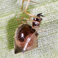 Phoroncidia ryukyuensis(稀) 琉球錐頭姬蛛(雌)(20) 體長1.8-2mm本屬1種 |