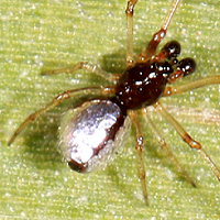 Chikunia nigra(普) 黑色金姬蛛(7) 體長2.7mm本屬1種 |