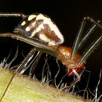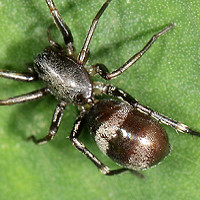 Dictis striatipes(少) 黑條山城蛛 (3) 體長3.3-3.5mm•眼6枚 本屬1種 |