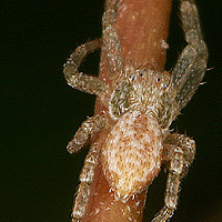 Uloborus plumipes(稀) 多毛蟱蛛(雌)(9)) 體長4mm本屬3種 |